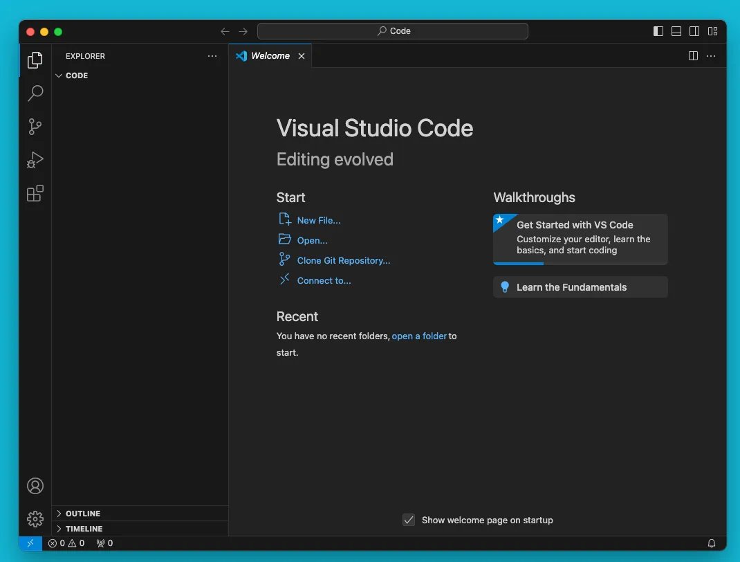 cd ~/Code && code .结果如下: