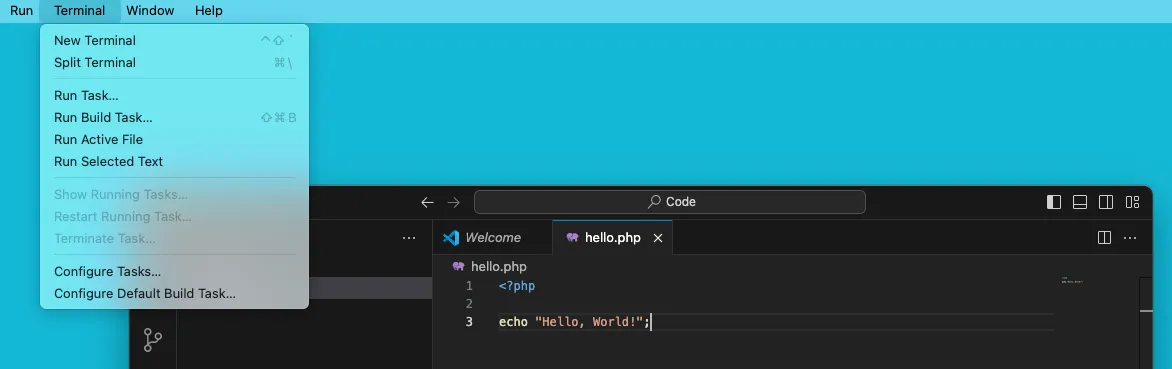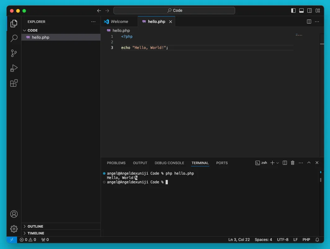 php hello.php你应该在终端中看到输出 “Hello, World!”。