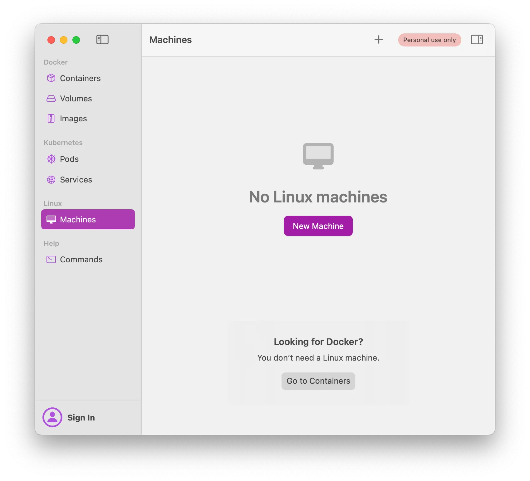 download and install OrbStack: https://orbstack.dev